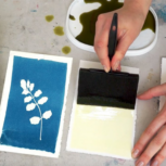 Na papier nanesieš svetlocitlivú vrstvu a vytvoríš vlastnú kompozíciu z rôznych predmetov – napríklad listov, kvetov, pierok alebo fotografického negatívu. Obraz sa začne postupne objavovať a keď ho ponoríš do čistej vody, zázračne sa premení na intenzívnu, hlbokú pruskú modrú.