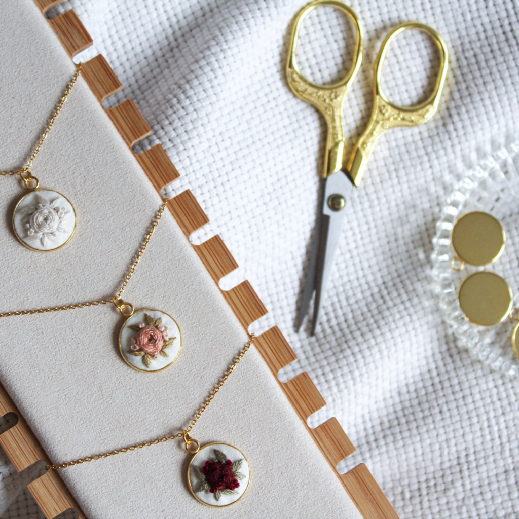 Myslíš si, že vyšívanie patrí len na obrusy? Omyl! Výšivky dnes zdobia oblečenie, doplnky a šperky a sú čoraz populárnejšie. Príď si s nami vytvoriť nádherný vyšívaný náhrdelník – elegantný, jemný alebo hravý – presne podľa tvojho štýlu.
