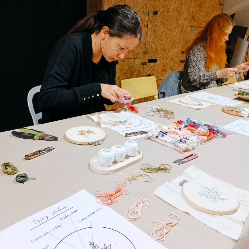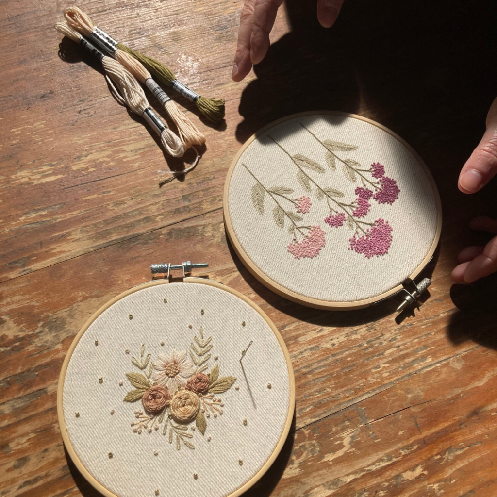 - osvojíš si niekoľko jednoduchých stehov a krok za krokom vyšiješ moderný kvetinový obrázok