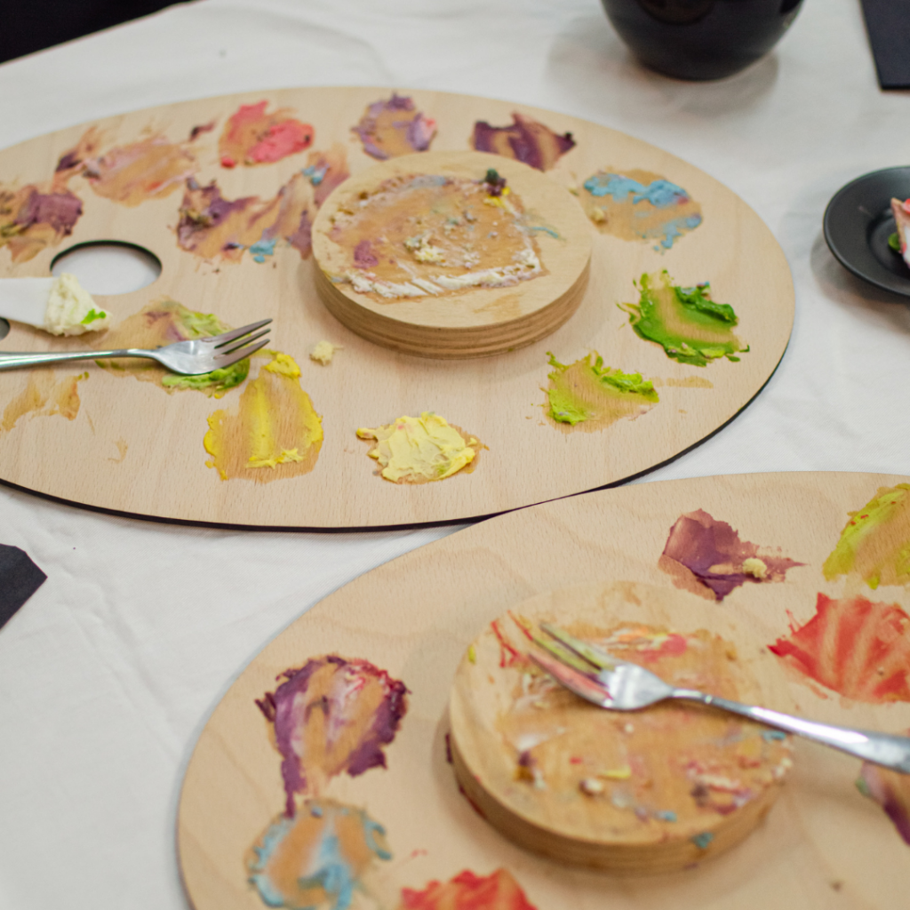 • originálne drevené tácky v tvare maliarskej palety, na ktorých budete tvoriť
