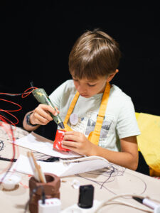 Náš zážitkový tábor je pre zvedavé mysle, ktoré milujú experimenty s materiálmi a chcú vidieť výsledky svojej práce. Ponúkame intenzívne tvorivý program – deti sa ponoria do procesu a odnášajú si hotové výstupy. Rozvíjame ich technickú gramotnosť a trpezlivosť pri práci s rôznymi strojmi.