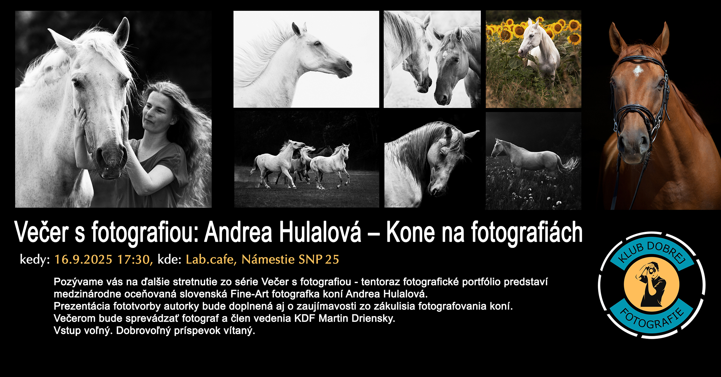 Večer s fotografiou – Andrea Hulalová – kone na fotografiách sep 16 Večer s fotografiou – Andrea Hulalová – kone na fotografiách 17:30 - 20:30